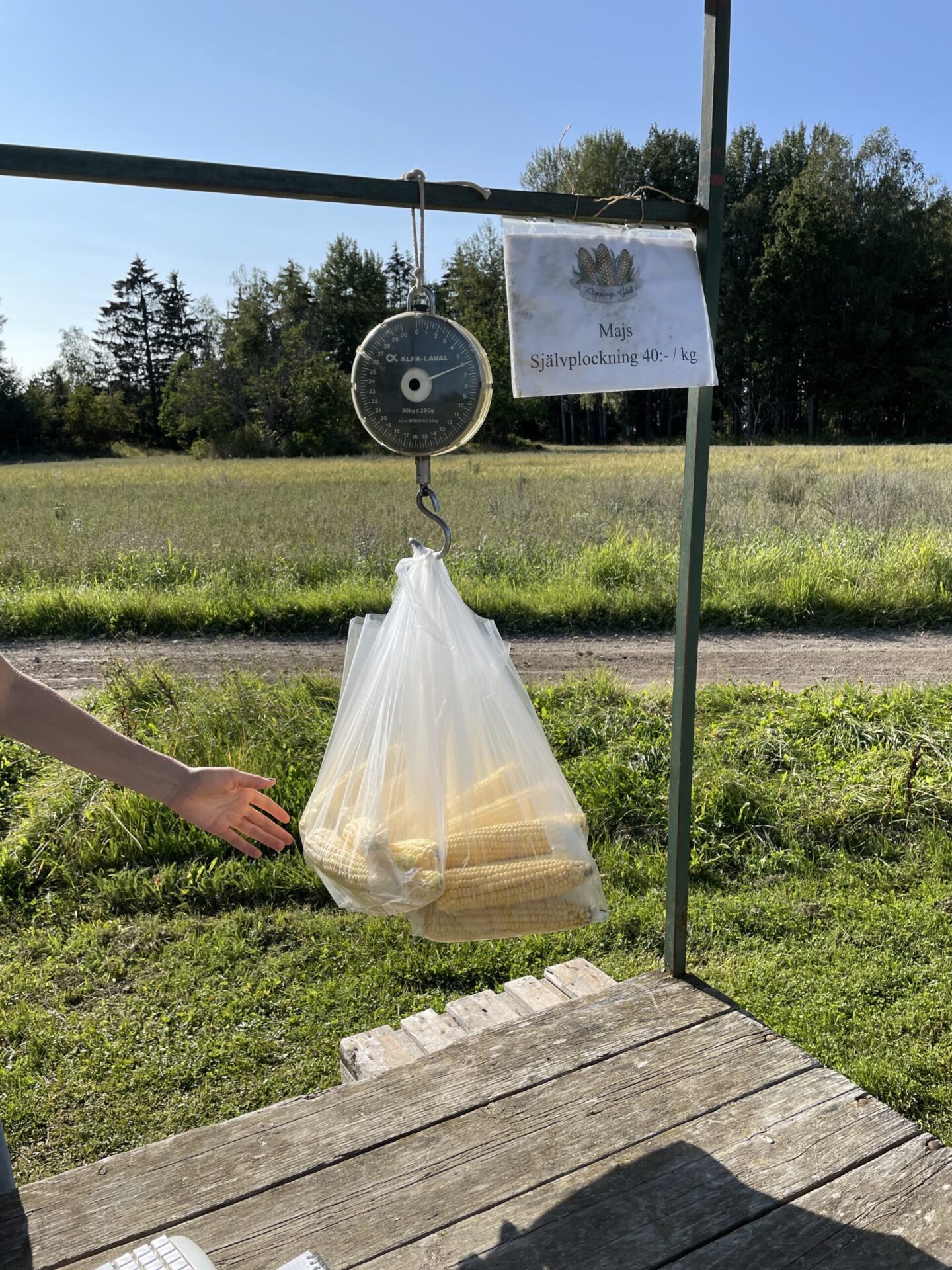 Självplock av majs! Igår provade jag på något jag aldrig gjort förut. Jag plockade majs på en majsodling utanför Stallarholmen, på Klippinge gård. Väldigt lättplockat och fantastiskt god majs!